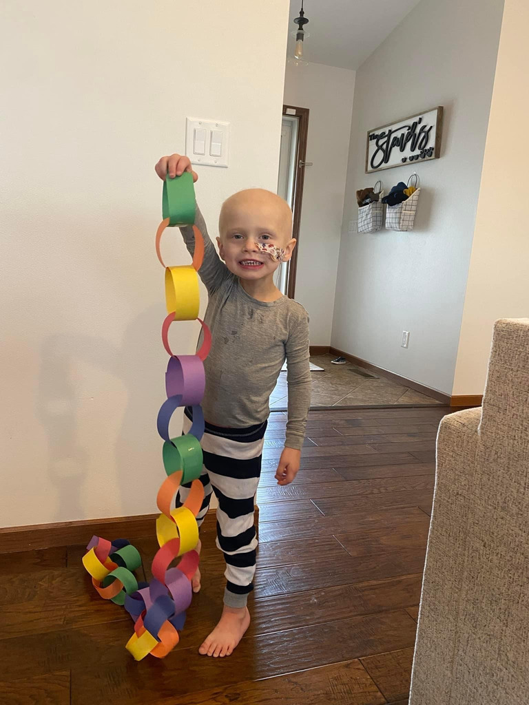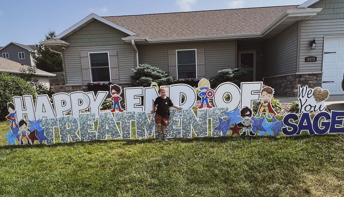 His treatment plan was 66 weeks. 42 weeks of frontline treatment, 6 weeks of photon radiation. Another week of Proton SBRT radiation at the Mayo clinic and 6 months of maintenance chemo. Our 66 weeks was not easy. Sage was 3½ at the time of diagnosis. He was still so little and his body had to fight a lot, which lead to lots of fevers and lots of neutropenia. It’s impossible to sum up the trauma and pain we all faced the past 2 years, but we are honored to have Sage as a superhero with Kids on Carousels.